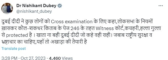 – डॉ. निशिकांत दुबे (@nishikanth_dubey) 27 अक्टूबर 2023