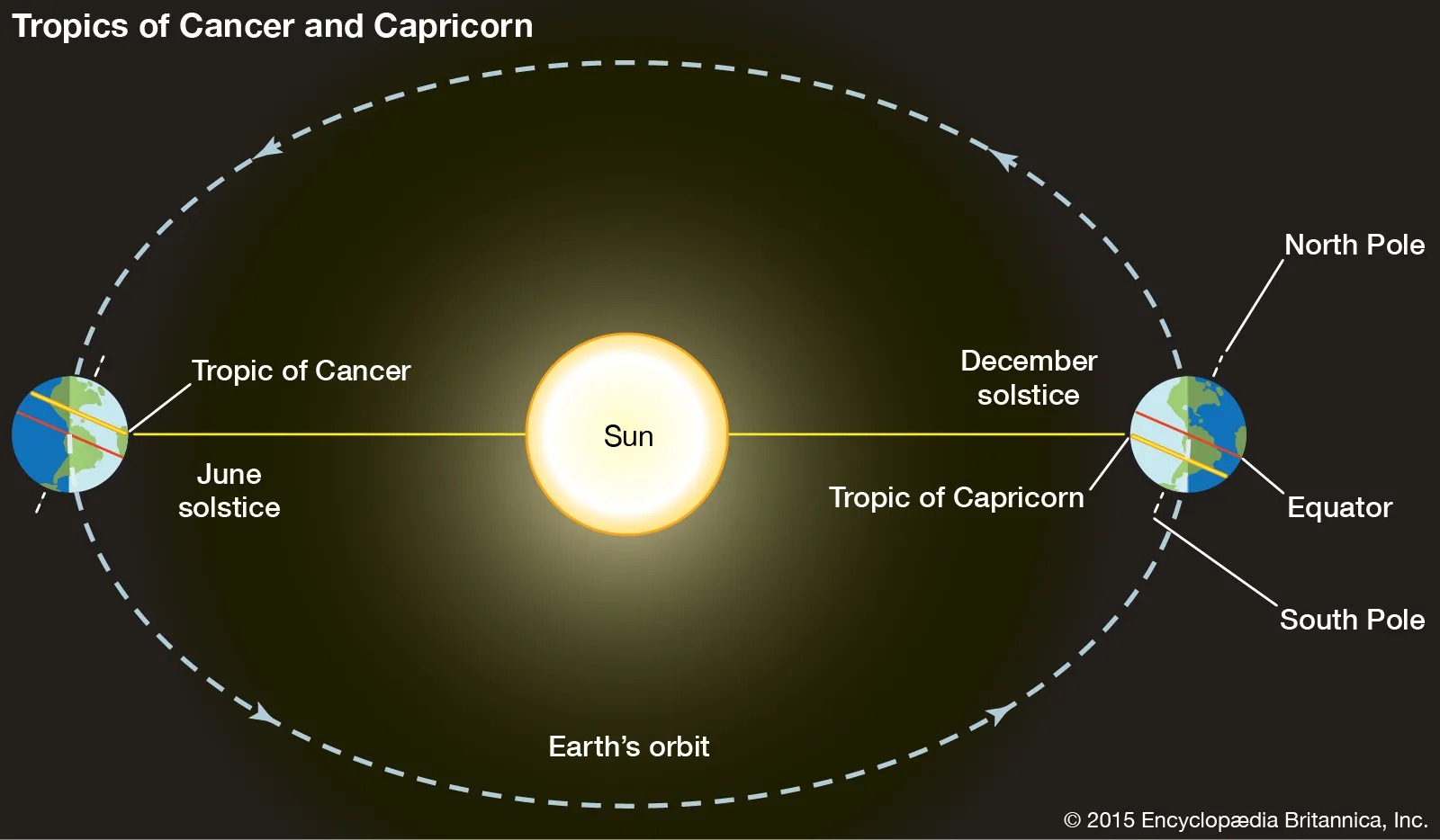 इसका उल्टा दक्षिणी गोलार्ध (दक्षिणी गोलार्ध) में 21 जून को विंटर सोलस्टिस (शीतकालीन संक्रांति) और 21 दिसंबर को समर संक्रांति (ग्रीष्म संक्रांति) होता है।